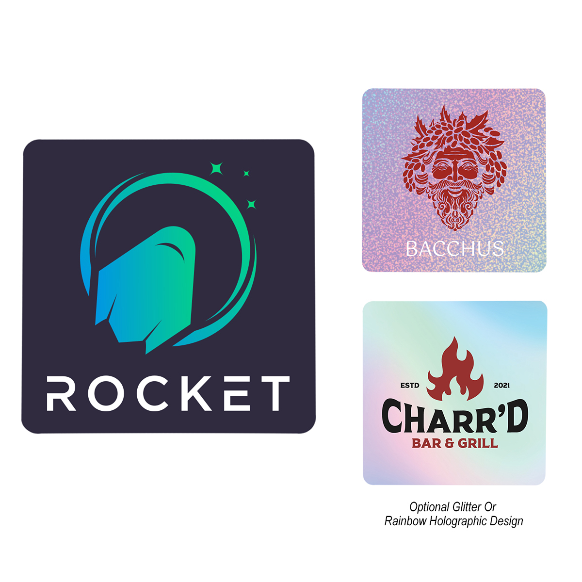 - Glitter and holographic designs available