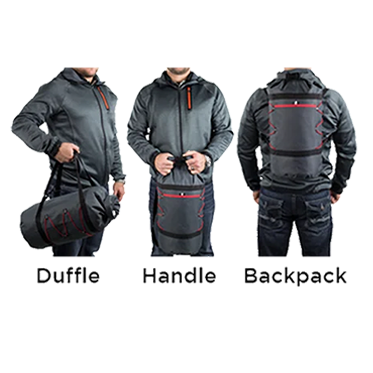 - Carry three ways: by the clip, as a duffle, or as a backpack