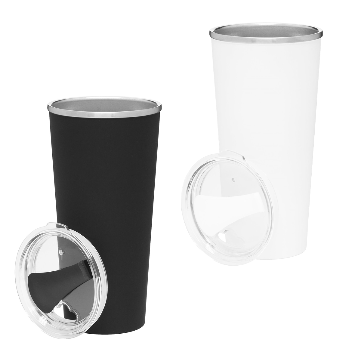 - Ultra thin, Clear, push-on lid with color matching swivel closure