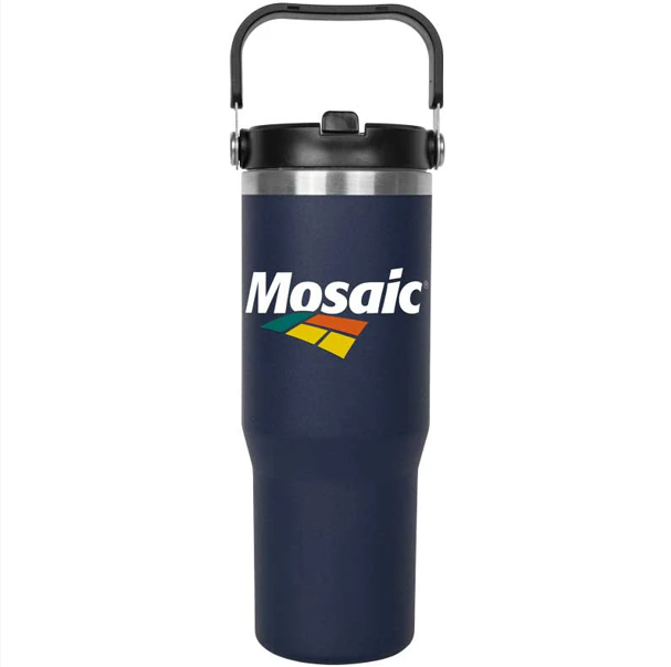 Vacuum Insulated Stainless Steel Tumbler with Handle and Built-In Straw – 30 oz - A12172